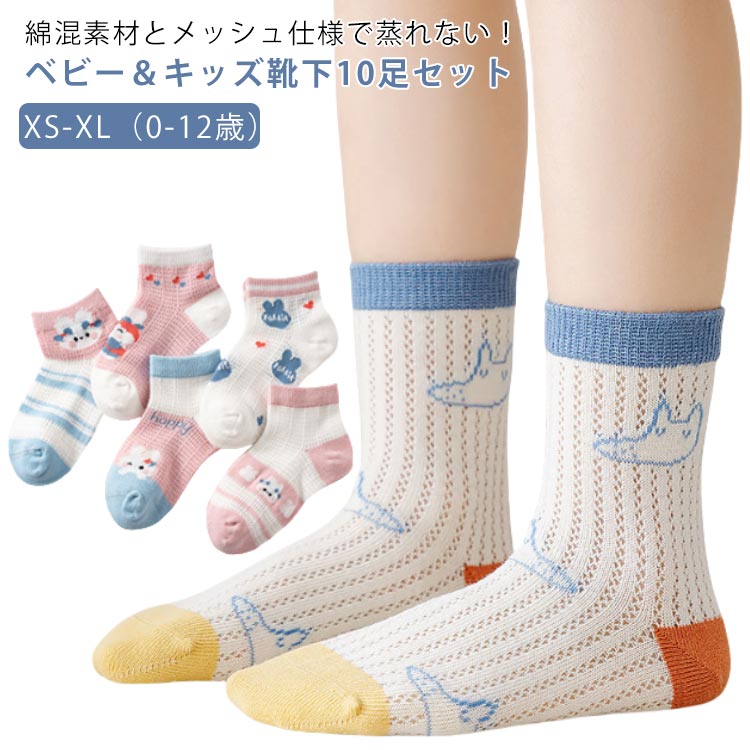子供用 ソックス メッシュ 夏用 キッズ用 送料無料 蒸れにくい 涼しい スポーツ セット 幼稚園 クルーソックス 新生児 小学生 保育園