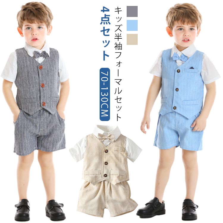 スーツ ベスト 4点セット 子供 蝶ネクタイ ベビー フォーマル 半袖ワイシャツ シャツ 半袖 90 結婚式 スーツベスト 半ズボン 120 ハーフパンツ 上下セット 子供服 70 80 男の 発表会