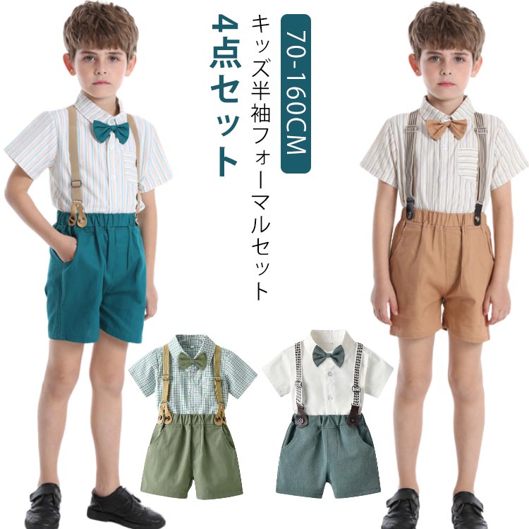 70 半ズボン 半袖 結婚式 フォーマル 蝶ネクタイ サスペンダー ハーフパンツ 4点セット ベビー スーツ 半袖ワイシャツ シャツ 子供服 130 90 発表会 涼しい 小学生 100 110 80