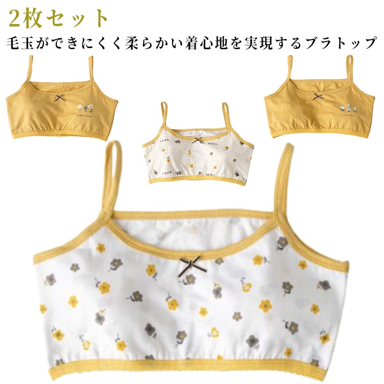 パッドなし ジュニアブラ ジュニア 肌着 キッズ 2枚セット ブラセット 中学生 ブラトップ キャミソール ショート丈 ブラ 可愛い スポーツブラ 女の子 ブラジャー コットン 綿 小学生