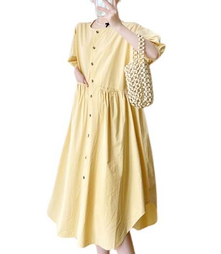 マタニティドレス レディース ワンピース イレギュラーヘムスカート アシンメトリー 半袖 ボリューム袖 パフスリーブ ラウンドネック ワイド フリル 前開き 切り替えデザイン 授乳