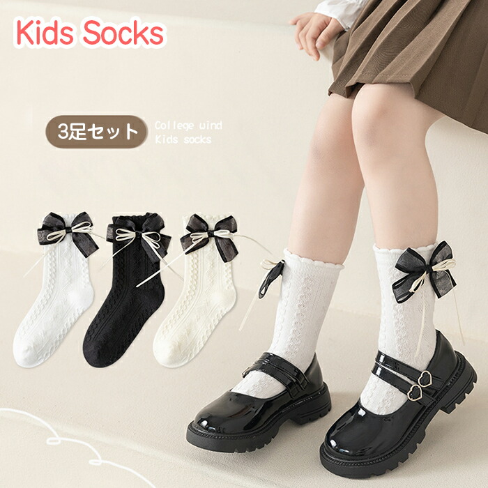 靴下 キッズ 女の子 可愛い リボン メッシュ 薄手 3点セット お姫様 くしゅくしゅ ソックス 子ども こども フォーマル服用靴下 春夏 入学式 結婚式 卒園式 卒業式 発表会 綿