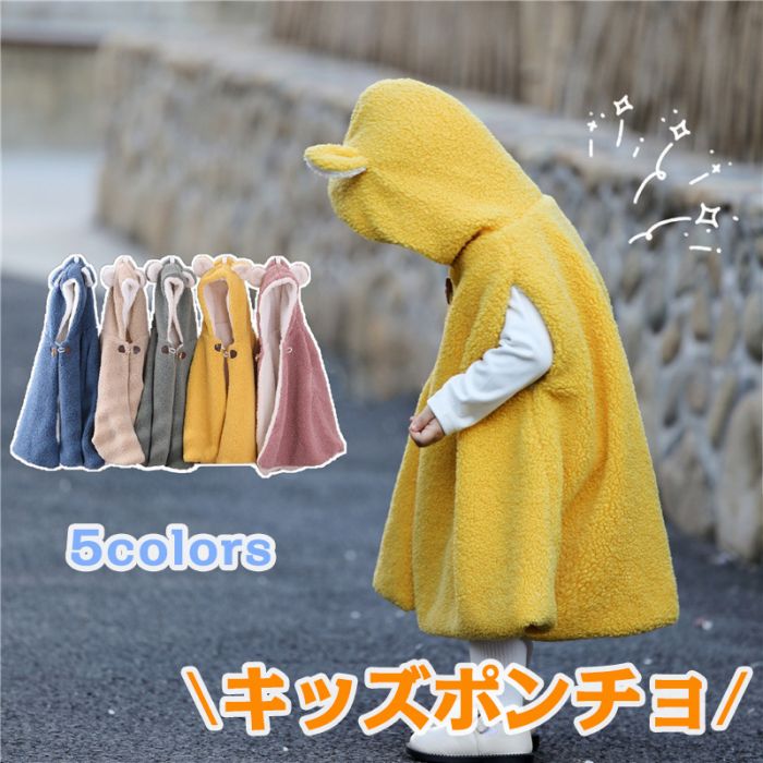 ポンチョ キッズ 防寒 もこもこ コート アウター ケープ フード付き クマ耳 アニマル ボア 着る毛布 可愛い 無地 動物 ギフト プレゼント 誕生日 キッズポンチョ 秋冬 子供服 暖か ルームウェ