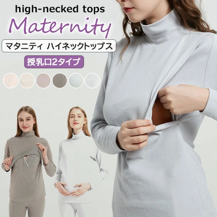 マタニティウェア 選べる授乳口2タイプ ハイネックプルオーバー 授乳タートル 授乳口付き 授乳服 トップス 秋 秋冬 冬 ハイネック マタニティ 長袖 タートルネック 全6色