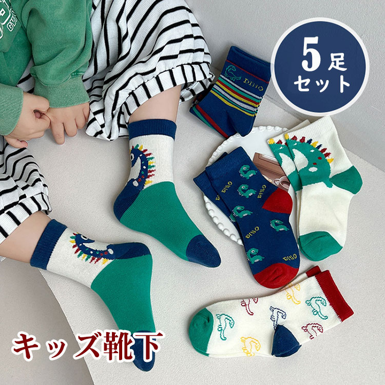 キッズ ソックス コットン 男の子 春 秋冬 子供用 靴下 かわいい ベビーソックス 子供用ソックス 幼稚園 小学生 ジュニア学生 吸汗 柔軟性 恐竜 くるま カエル