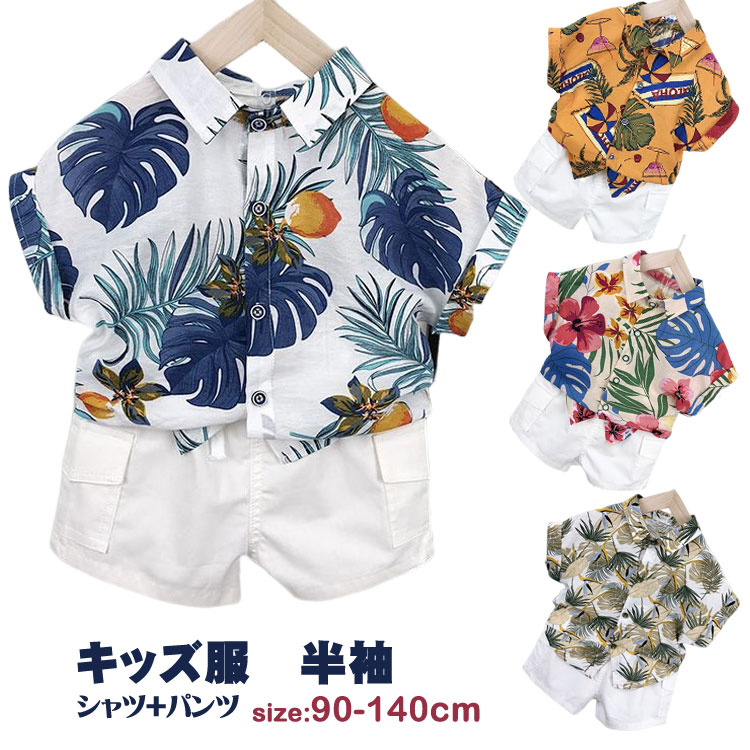 子供服 セットアップ 男の子 キッズ Tシャツ パンツ カラフル 上下セット 女の子 半袖 夏 カジュアル リゾート服 旅行 部屋着 海 ビーチ プレゼント 90-140cm おしゃれ