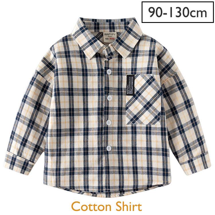 キッズ チェック ワイシャツ 綿 シャツ 長袖 男の子 ボタンシャツ 子供用 Yシャツ 子供服 秋冬 春 フォーマル 90 100 110 120 130cm
