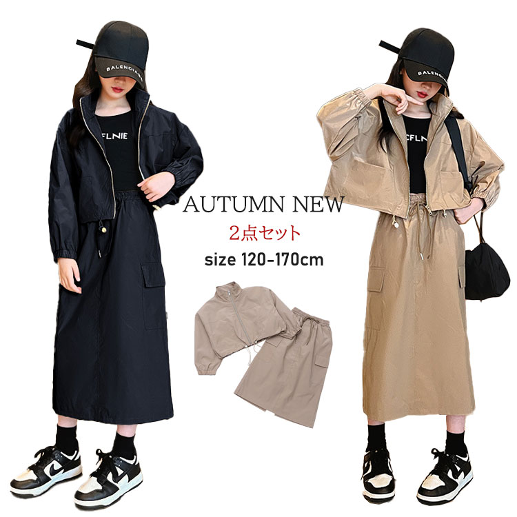 女の子 セットアップ 2点セット 上下セット ジャケット ロングスカート 春秋 ガールズ 子供服 ジュニア キッズ服 カジュアル 普段着 韓国子供服 おしゃれ 120 130 140 150 160