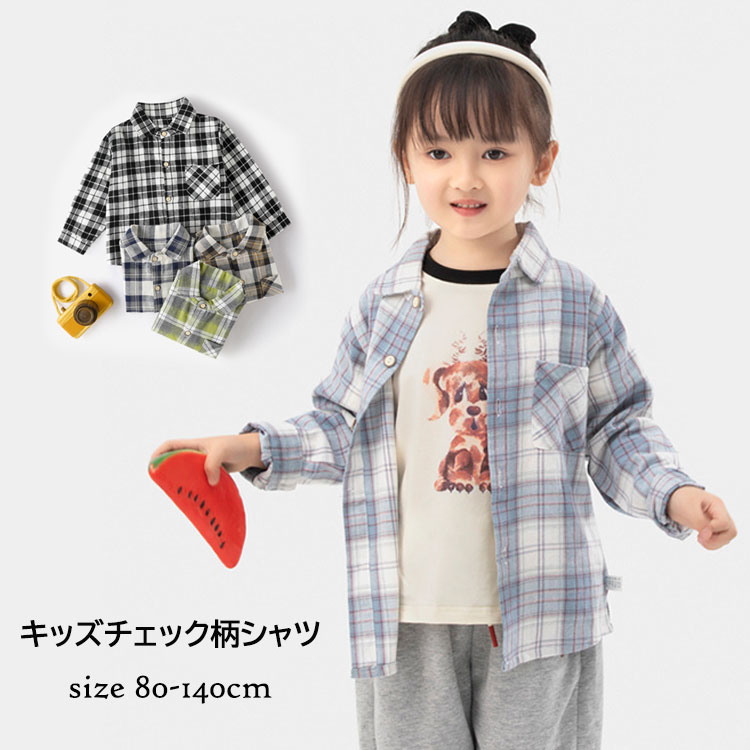チェック柄シャツ キッズ 女の子 男の子 ボタンシャツ ベビーシャツ ボーイズ ガールズ ワイシャツ コットン 子供服 ジュニア 可愛いシャツ 長袖 コットンシャツ yシャツ カジュアル 日常