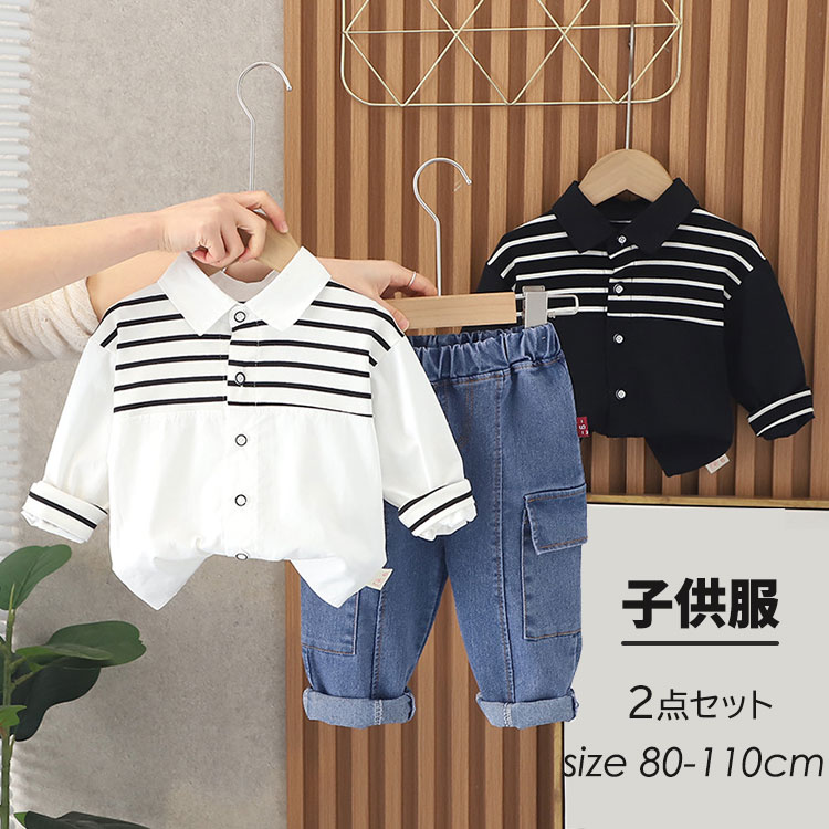 子供服 ベビー 男の子 2点セット セットアップ カジュアル 赤ちゃん キッズ シャツ デニムパンツ 80cm 90cm 100cm 110cm カッコイイ 春秋 日常着 やわらかい 通気性抜群 2色