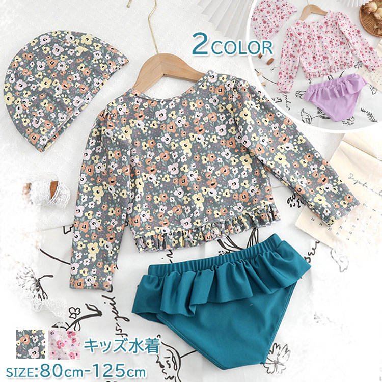 キッズ 水着 女の子 セパレート トップス パンツ 子供水着 長袖 上下セット 女児 スイミング 日焼け対策 UVカット 小学校 中学生 スイムウェア ガールズ水着 ベビー水着 お洒落 ビーチ