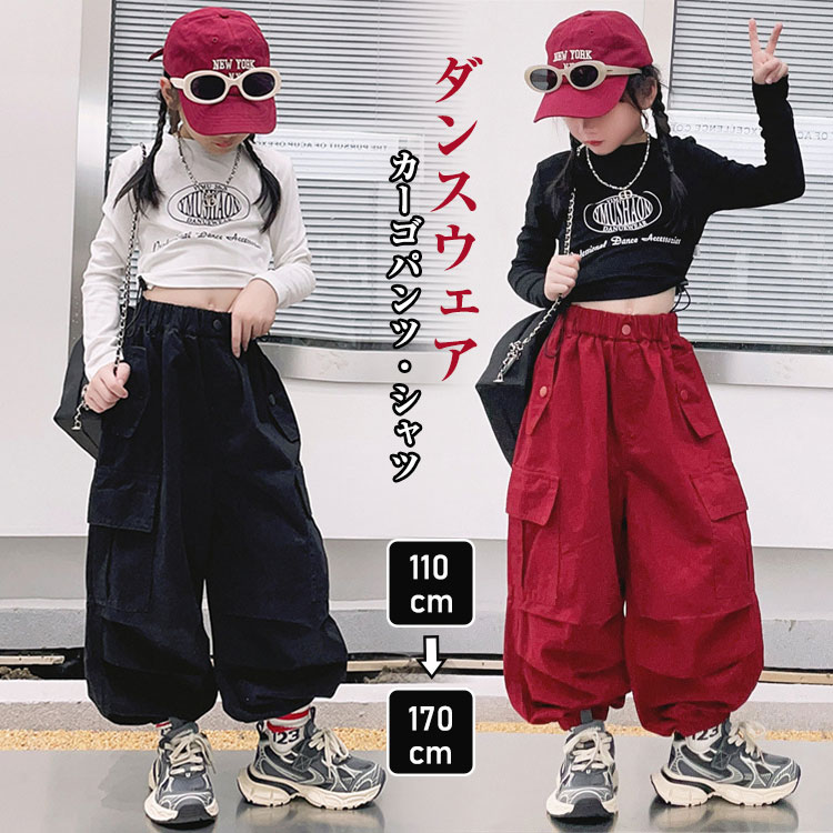 ダンスウェア ヒップホップ衣装 カーゴパンツ シャツ ストリートダンス 110 120 130 140 150 160 170♪