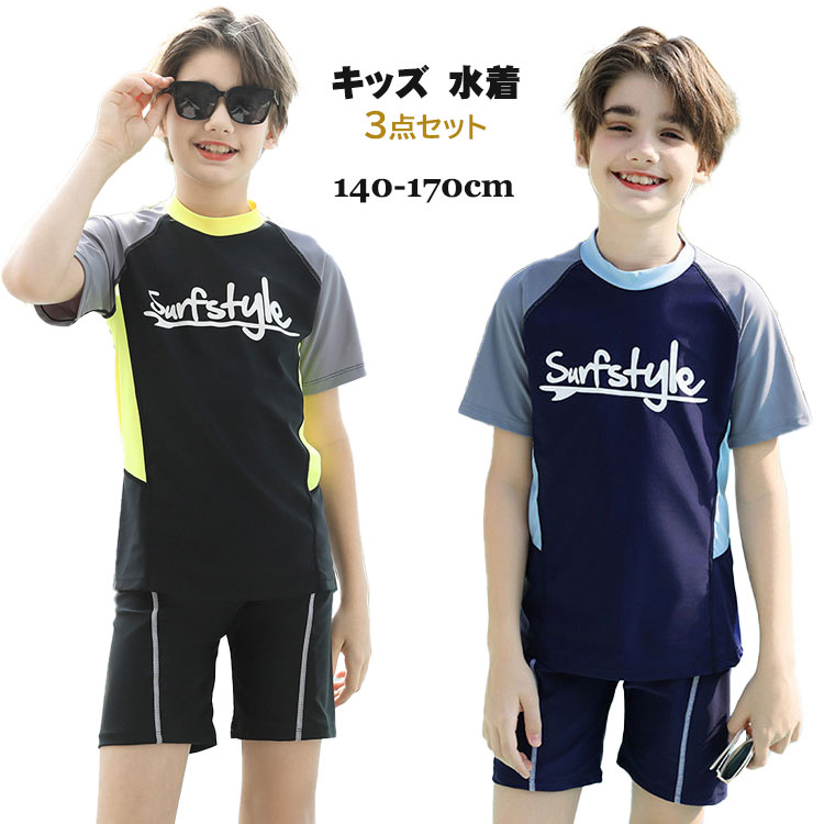 男の子 半袖 水着 セパレート キッズ 140 150 160 165 170 3点セット キャップ付き みずぎ スクール水着 上下セット ジュニア トップス ショートパンツ 子供水着 スイムウェア