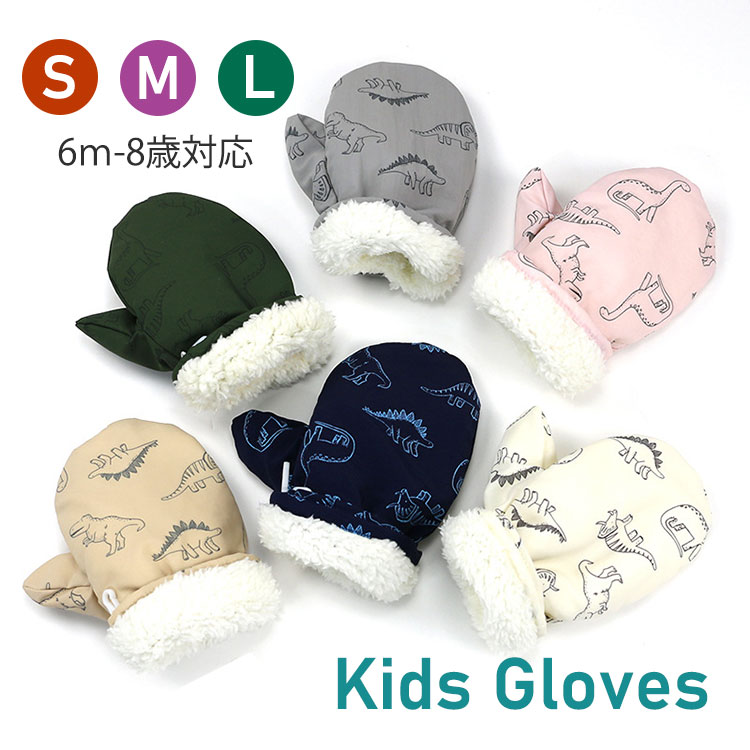 グローブ 手袋 キッズ ミトン 男の子 女の子 恐竜柄 保温 防寒 撥水 雪遊び かわいい もこもこ ボア 裏起毛 キッズ手袋 子供手袋 子ども手袋 ミトン手袋 子供用 指なし 暖かい 6m-8歳対応