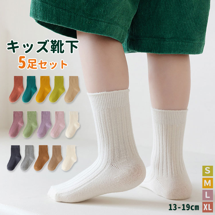 キッズ 靴下 子供 5足セット ソックス 女の子 男の子 無地 おしゃれ カラフル かわいい ベビー ジュニア くつした 保育園 幼稚園 通園 通学 子供ソックス ボー