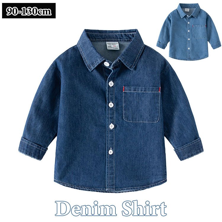 子供服 ボタンシャツ 男の子 デニムシャツ キッズ 長袖 トップス ワイシャツ ボーイズ 無地 カジュアル Yシャツ ジュニア 日常着 春秋着 90 100 110 120 130 定番 ブルー