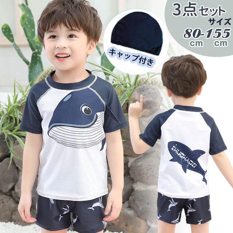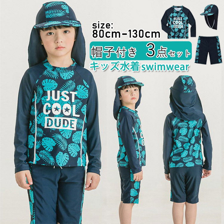 3点セット キッズ 水着 男の子 セパレート ラッシュガード パンツ 80 90 100 110 120 130 140 150