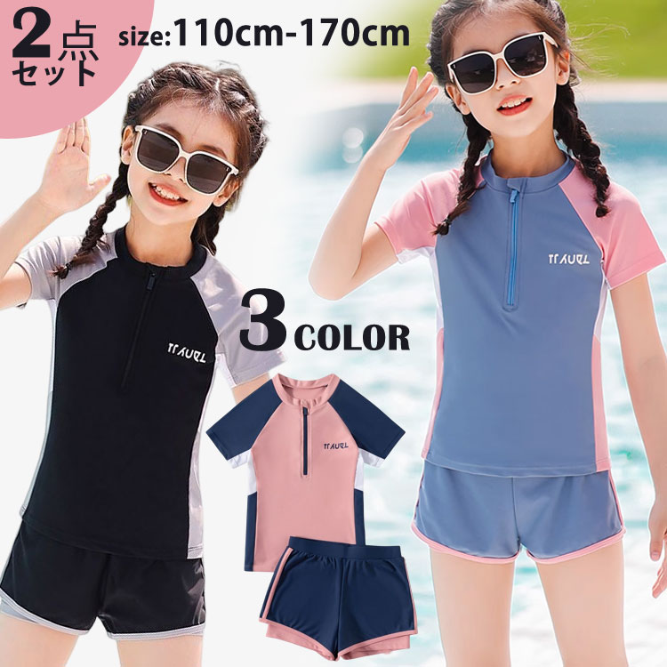 子供 水着 女の子 ジュニア水着 トップス 半袖 パンツ キッズ セパレート スクール水着 上下セット ラッシュガード uvカット 可愛い お洒落 130 140cm 150cm 160cm