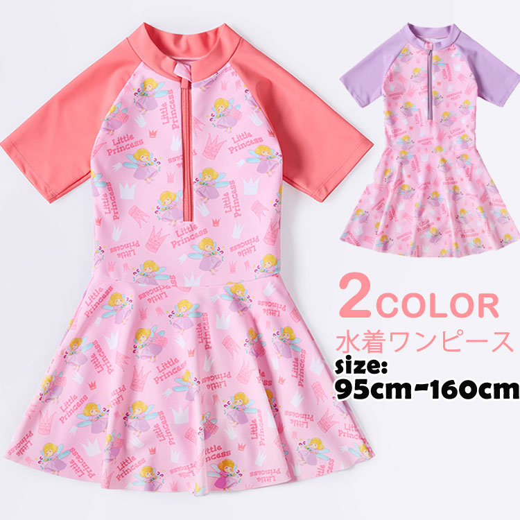 女の子 ジュニア ワンピース水着 キッズ 水着 日焼け防止 子供水着 スクール水着 半袖 ラッシュガード 可愛い お洒落 100cm 110cm 120cm 130cm 140cm 150cm