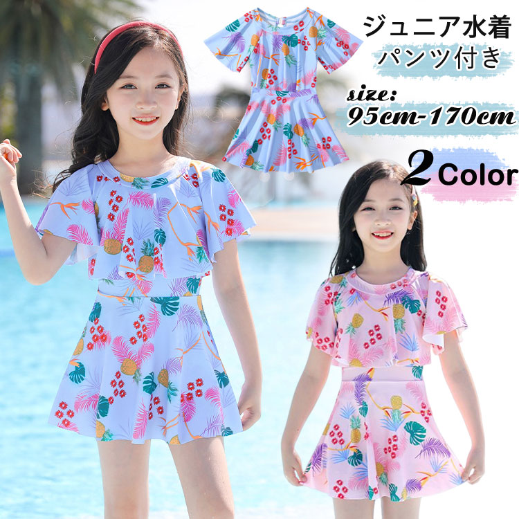 キッズ 女の子 水着 子供水着 ジュニア ワンピース パンツ付き スクール水着 2点セット ラッシュガード 可愛い お洒落 95cm 100cm 110cm 120cm 130cm 140cm 150