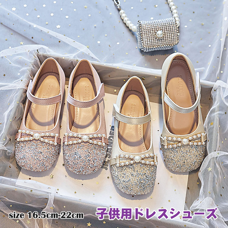 子供靴 女の子 ドレスシューズ キラキラ プリンセスシューズ 16.5 17 18 19 20 21 22cm ローヒール 蝶結び き ガールズ 子供 シューズ 子ども用 滑り止め加工 結婚式 発表