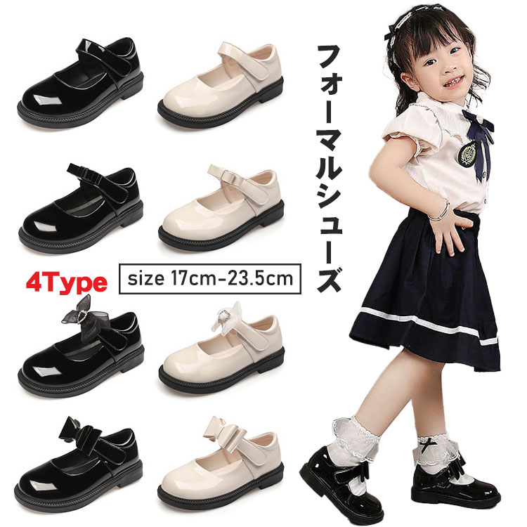 子供靴 女の子 フォーマルシューズ 4タイプ 2色 17 18 19 20 21 22 23 23.5cm ドレスシューズ 黒 ベージュ 結婚式 ジュニア ガールズ 可愛い おしゃれ 歩きやす