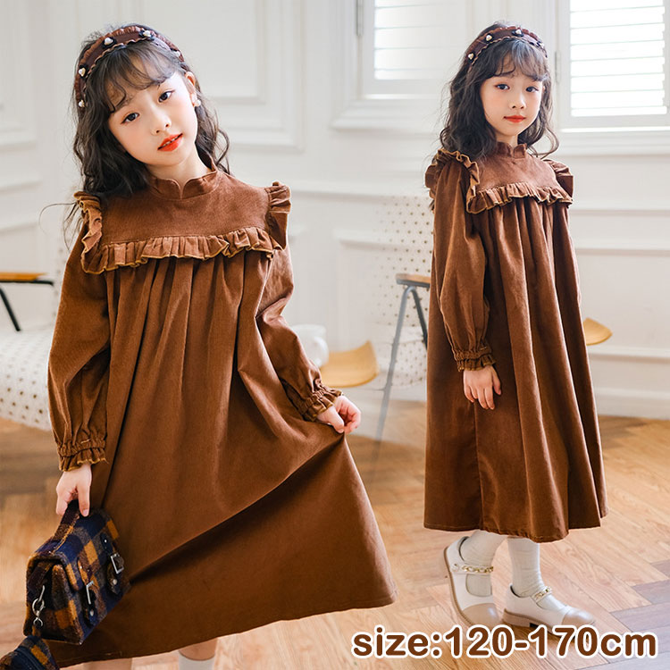 120-170 ワンピース 長袖 きれいめ 春 秋冬 ジュニア ドレス ゆったり 女の子用 長袖ワンピース おしゃれ