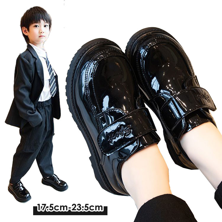男の子 フォーマルシューズ ローファー 黒 発表会 子供靴 キッズ 学生 入学式 卒業式 結婚式 卒園式 パーティ おしゃれ 歩きやすい マジックテープ ブラック 17cm-23.5cm