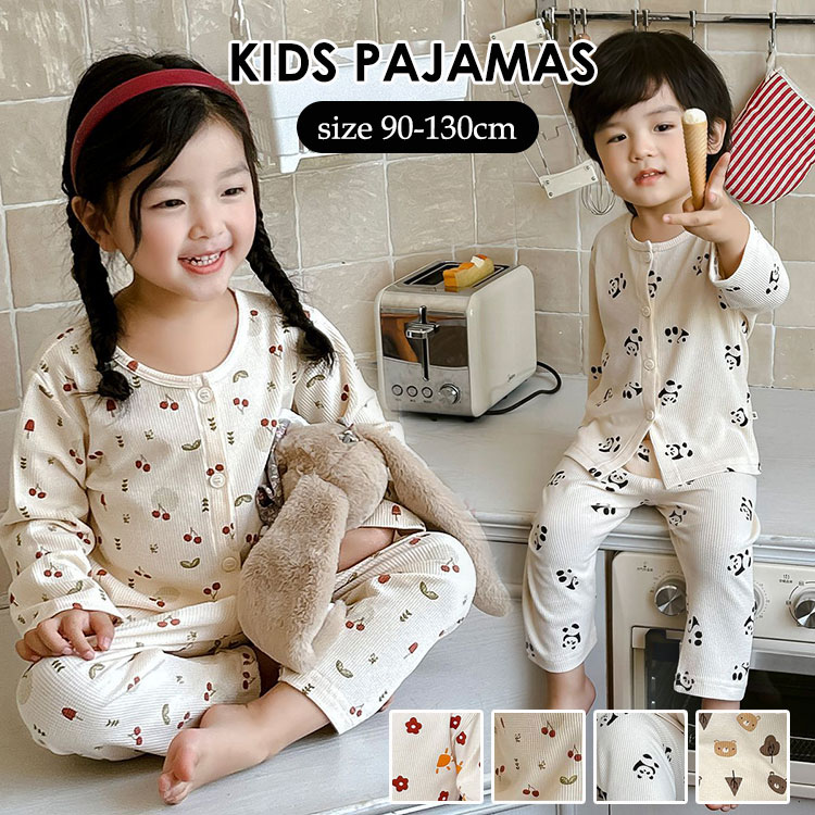 子供服 パジャマ 長袖 上下セット キッズ 柔らかい ルームウェア 2点セット 前開き 男の子 女の子 寝巻き 部屋着 かわいい 着心地快適 90 100 110 120 130cm 4タイプ