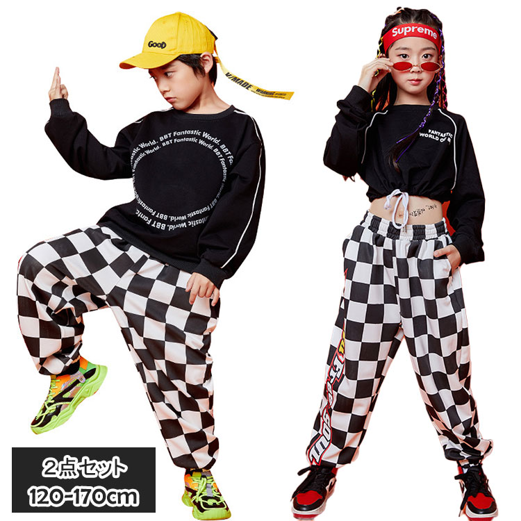 男の子 女の子 ダンスウェア 2点セット へそ出し キッズ 長袖 Tシャツ ロングパンツ ダンス衣装 ヒップホップ ストリートダンスジュニア 子供服 おしゃれ チームダンス hiphop K-pop