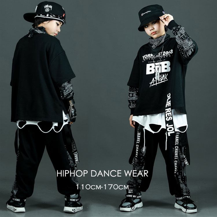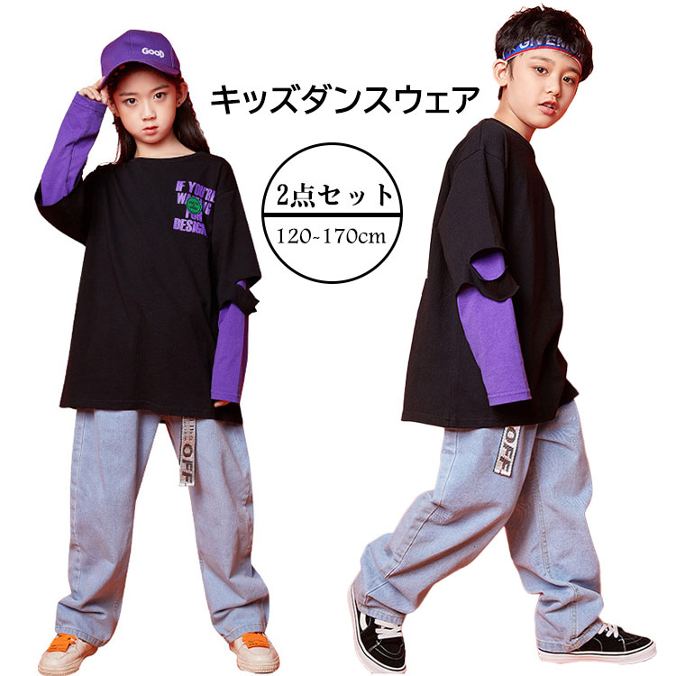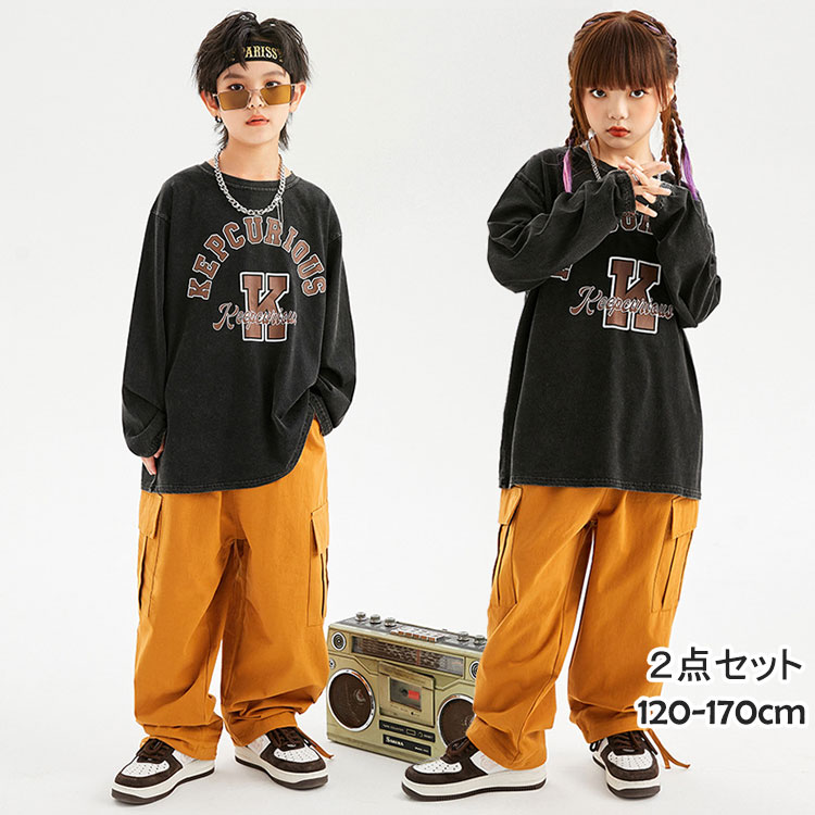 ダンスウェア 2点セット 男の子 女の子 キッズ 長袖 Tシャツ ワイドパンツ ダンス衣装 ヒップホップ ストリートダンスジュニア 子供服 おしゃれ チームダンス hiphop K-pop 演出服 団
