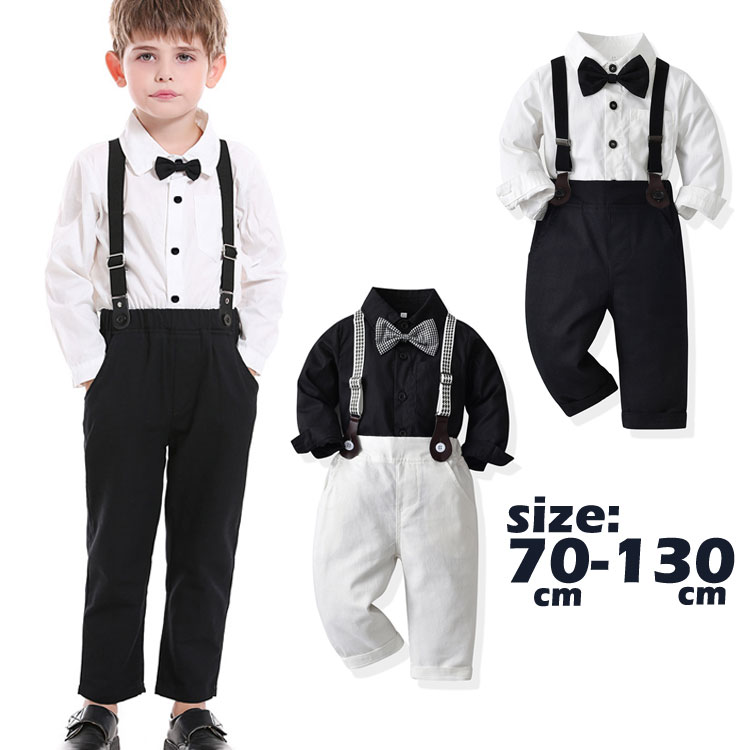 男の子 フォーマル 4点セット 子供 スーツ 子供服 ベビー服 長袖シャツ 長ズボン 蝶ネクタイ サスペンダー おしゃれ 七五三 結婚式 初節句 着心地抜群 お誕生日 プレゼント 90-160cm グ