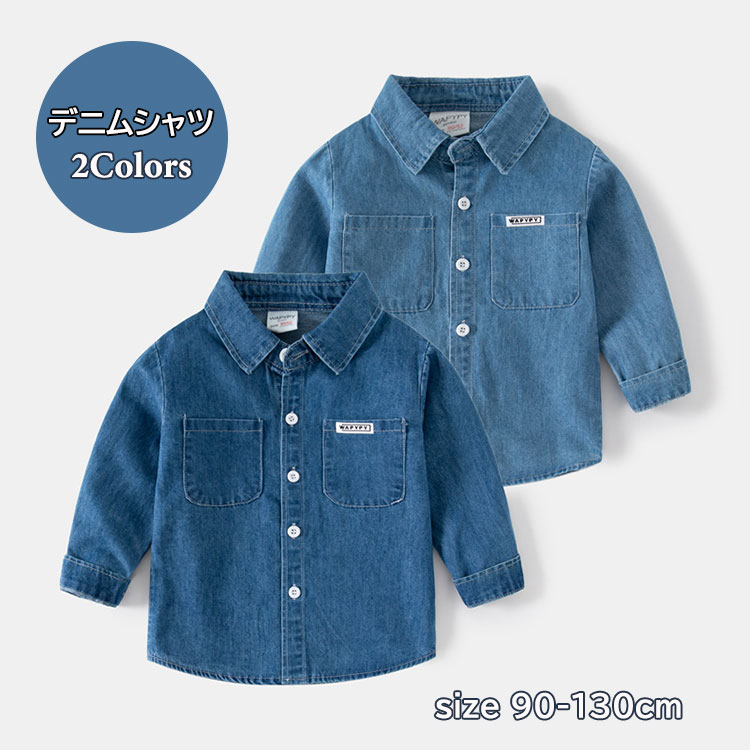 子供服 ワイシャツ デニム 春秋 2色 男の子 デニムシャツ キッズシャツ 90 100 110 120 130cm キッズ 長袖 トップス ボーイズ 無地 カジュアル Yシャツ ジュニア 日常着
