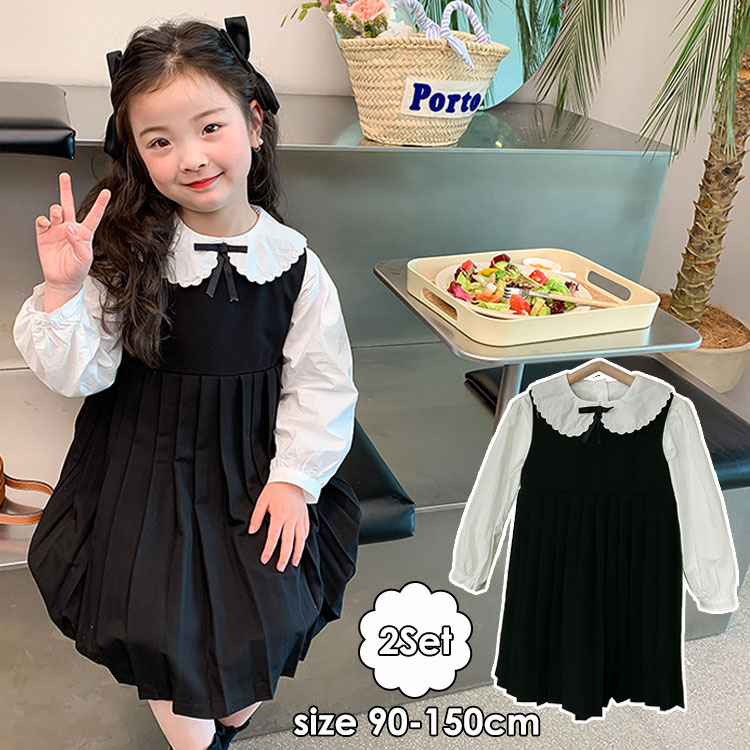 女の子 セットアップ 2点セット ワンピース 長袖シャツ フォーマル 入学式 卒業式 発表会 お受験面接 七五三 こども服 春秋 キッズ かわいい おしゃれ 90 100 110 120 130 14