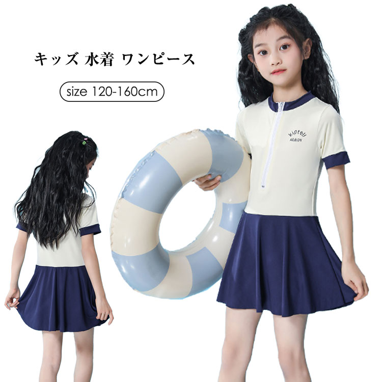 ワンピース 水着 キッズ 女の子 オールインワン 半袖 胸パッド付き 速乾 通気 かわいい ジュニア ショートパンツ一体型 子供水着 ガールズ スクール水着 スイムウェア 120 130 140 15
