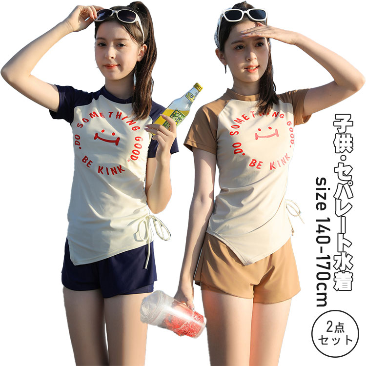 新作 かわいい 半袖 水着 女の子 セパレート 2点セット キッズ ジュニア水着 上下セット トップス ショートパンツ 胸パッド付き 子供水着 ガールズ スイムウェア 140 150 160 165
