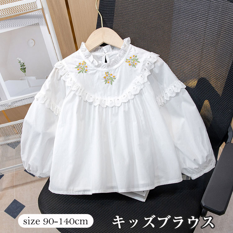 ブラウス 長袖ブラウス キッズ シャツ 女の子 白 長袖シャツ レース付き フリル ファッション 90 100 110 120 130 140 可愛い ガールズ 普段着 通園 通学 ホワイト