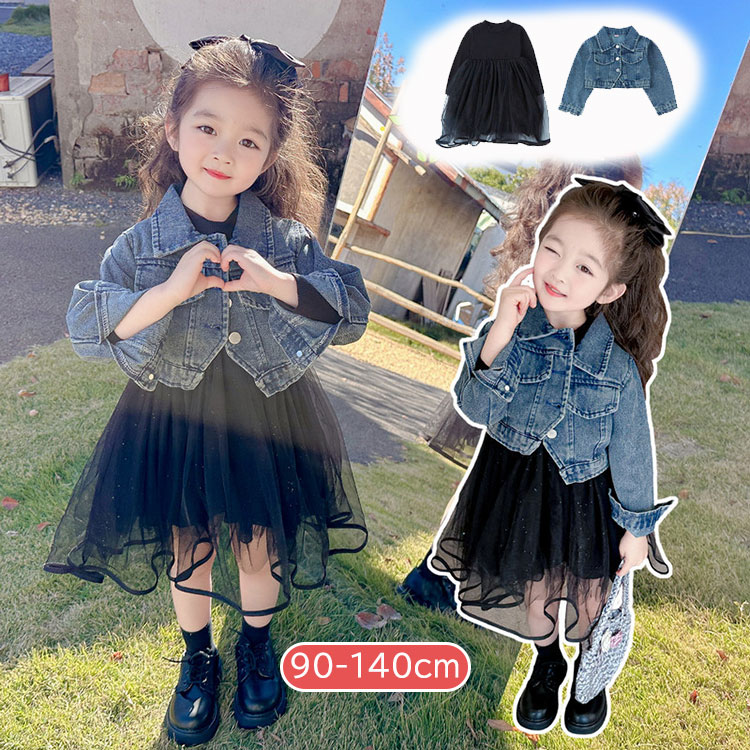 子供服 女の子 2点セット 長袖 ワンピース デニムジャケット セットアップ 春 秋 キッズ かわいい 幼稚園 小学生 日常着 誕生日 プレゼント 90 100 110 120 130 1