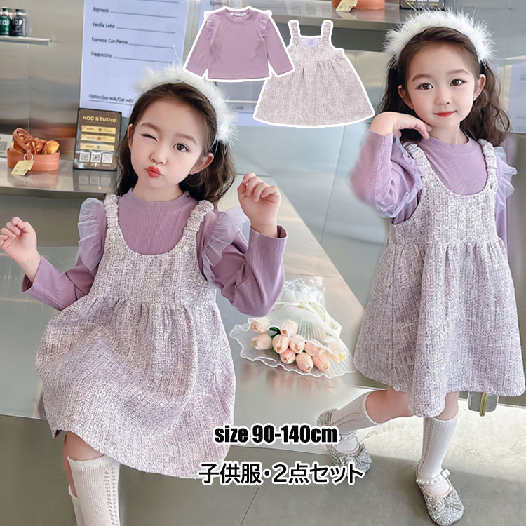 女の子 ワンピース セットアップ 2点セット シャツ ノースリーブワンピース 春 秋 キッズ かわいい 子供服 幼稚園 小学生 日常着 誕生日 プレゼント 90 100 110 120 1