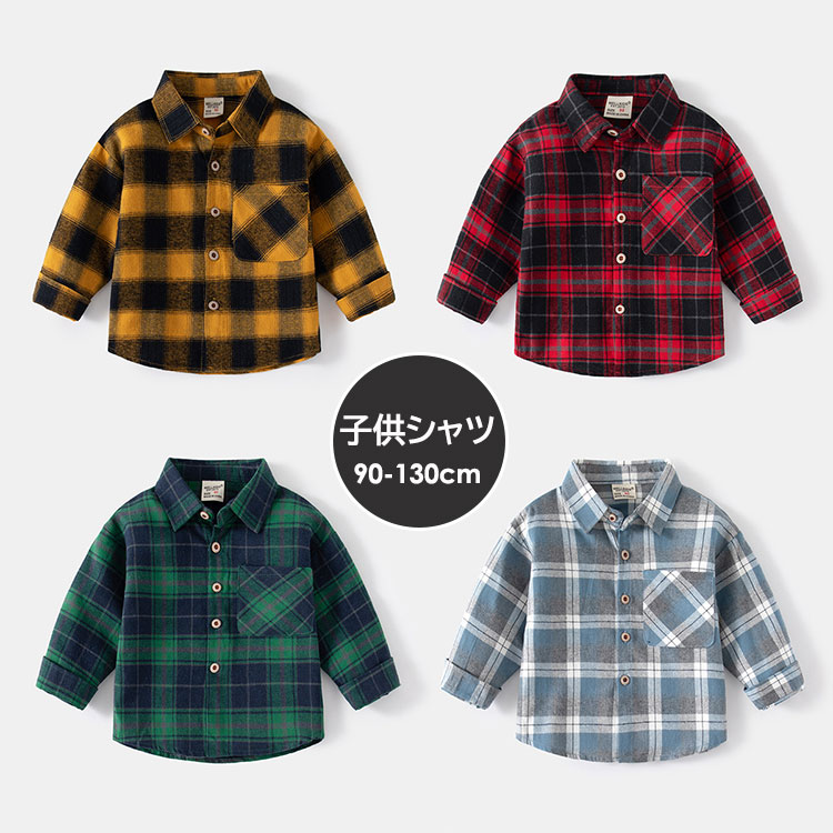 キッズ シャツ チェック柄 長袖 男の子 4色 ボタンシャツ 子供用 ワイシャツ Yシャツ 子供服 秋冬 春 かわいい コットンシャツ 通園通学 90 100 110 120 130cm