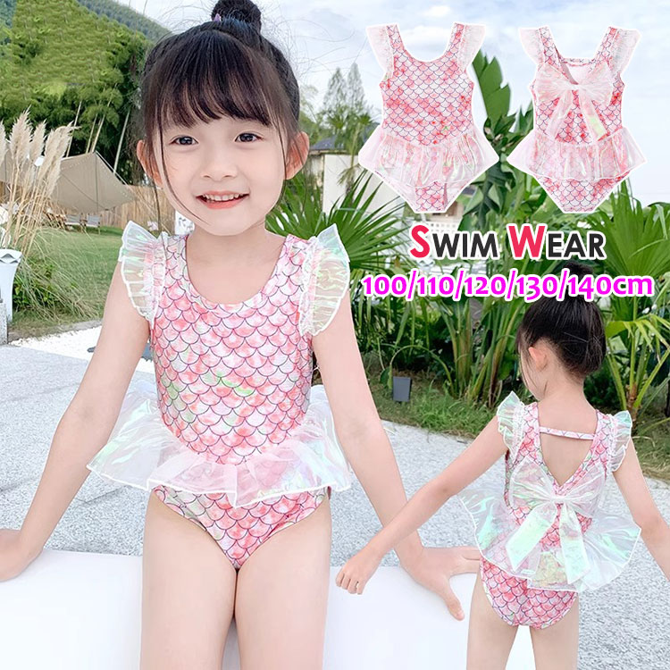 キッズ 水着 ワンピース水着 人魚姫 人魚水着 女の子 子供水着 マーメイド水着 リボン付き かわいい キッズ水着 女児 ガールズ ベビー水着 子ども水着 みずぎ スイムスーツ スイミング 70 80