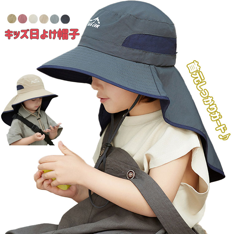 子供 日よけ帽子 UVカット つば広帽子 キッズ バイザーハット ビーチハット ネックカバー付き 首元ガード 紫外線対策 男の子 女の子 あご紐付き 調節可能 通園 通学 海遊び 旅行 夏休み アウト