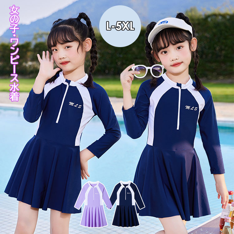 子供水着 スクール水着 長袖 ワンピース 女の子 ラッシュガード ショートパンツ付き 一体型水着 100 110 120 130 140 150 160 ネイビー パープル パッド付き ジュニア スイ