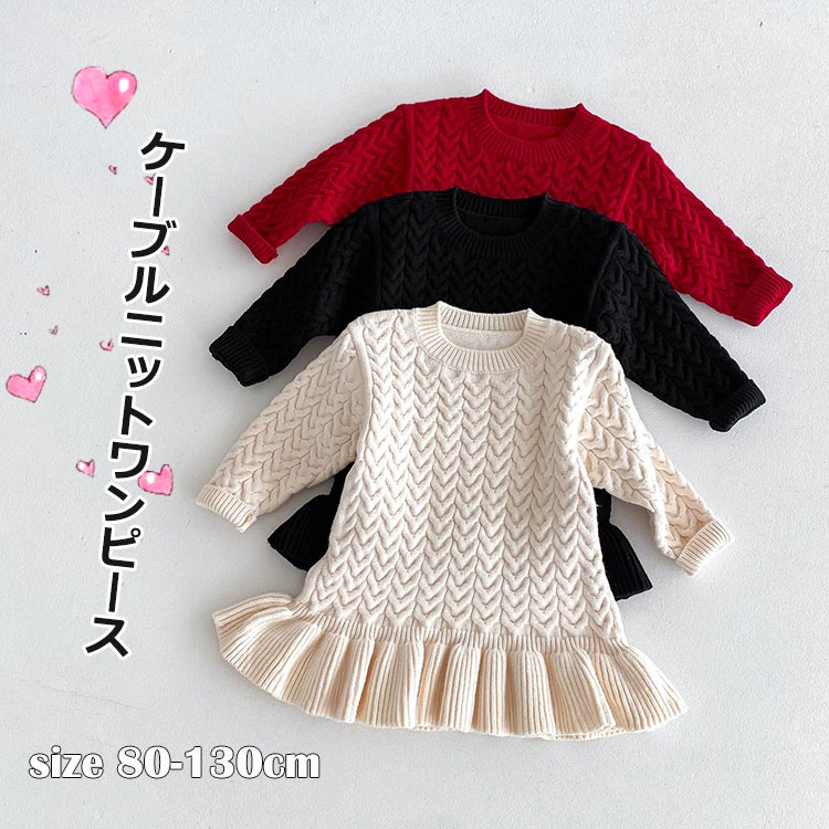 子供服 ケーブルニットワンピース 女の子 春秋 冬 ワンピース 長袖 可愛い キッズ 子ども服 ベビーワンピース ベビー服 フリル付き おしゃれ 女児 韓国 姉妹 友達 お揃い 通園 通学 誕生日 プ