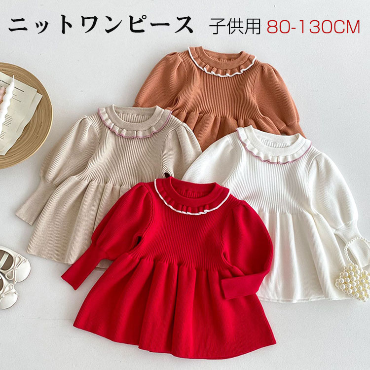 子供服 ニットワンピース 春秋 冬 ワンピース 長袖 可愛い 女の子 キッズ 子ども服 ベビーワンピース ベビー服 フリル付き おしゃれ 女児 韓国 姉妹 友達 お揃い 通園 通学 誕生日 プレゼント