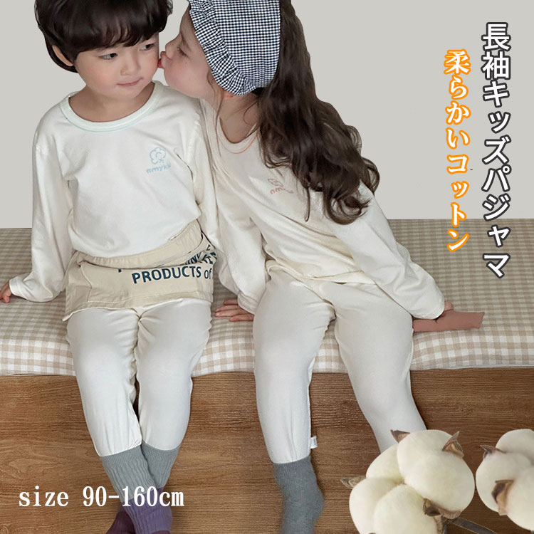 秋冬 子供服 パジャマ ルームウェア 男の子 女の子 下着 インナー コットン かわいい 長袖 2点セット キッズ 100 110 120 130 140 150 160cm 上下 部屋着 寝間着 ジ
