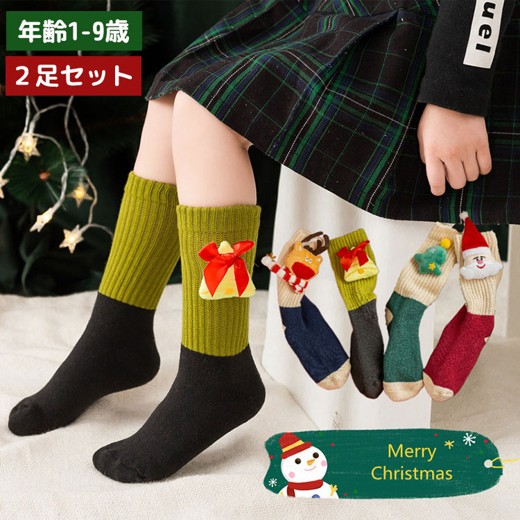 選べる2足セット 子供 靴下 クリスマスソックス 秋冬 厚手 暖かい 子供用 ベビー 赤ちゃん 男の子 女の子 かわいい キッズ クリスマス クリスマス靴下 プレゼント 1-9歳 4色