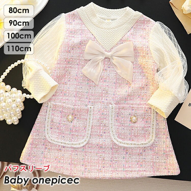 子供 ワンピース 長袖 パフスリーブ ベビーワンピース ベビードレス ピンク 韓国子供服 赤ちゃん 結婚式 キッズ プリンセス セレモニードレス 重ね着 80 90 100 110cm かわいい おし