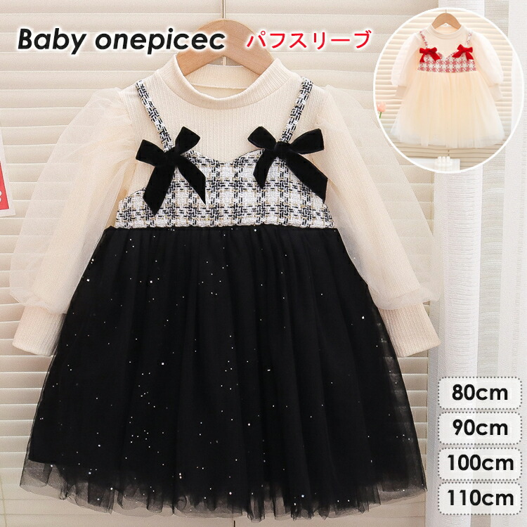 子供 ワンピース ベビードレス 韓国子供服 赤ちゃん ベビーワンピース 長袖 パフスリーブ 結婚式 キッズ プリンセス セレモニードレス チュールドレス チュールワンピース 80 90 100 110