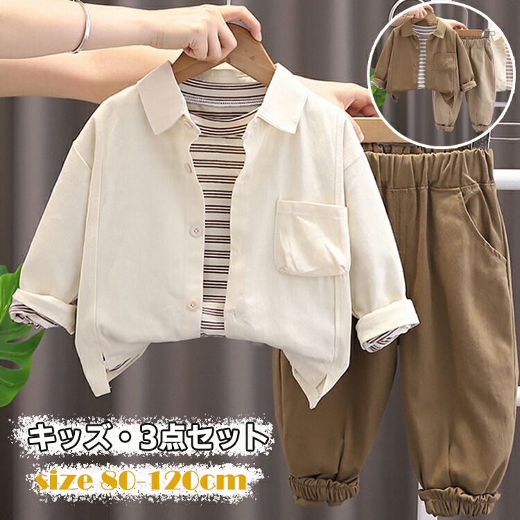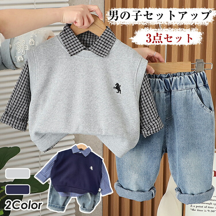 キッズ 男の子 春 秋 セットアップ ファッション カジュアル 上下セット 3点セット ベビー服 かわいい 子供服 80 90 100 110 120cm 重ね着 通園 通学 誕生日 プレゼン